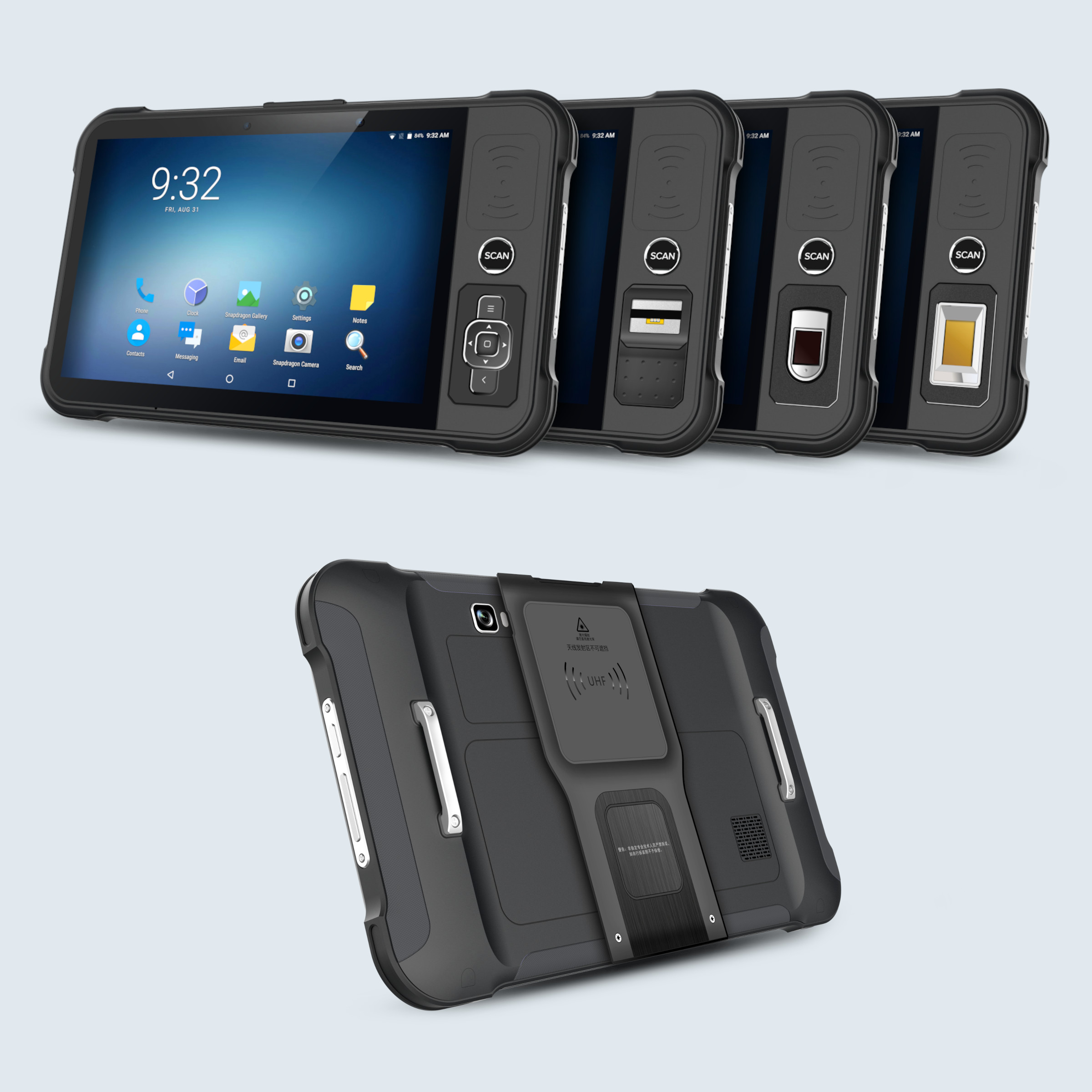 Das robuste Industrie-Tablet P80/LogiScan-3000 mit 1,8 GhZ Octa-Core-Prozessor basiert auf Android 9. Der 8-Zoll-LCD-Bildschirm mit Multipoint-kapazitivem Touch und einer Auflösung von 1920 x 1200 ist auch unter starkem Lichteinfall lesbar. Der starke 8000mAh Akku ist für mehr als 500 Stunden Standby-Betrieb ausgelegt. IP65 Schutz garantiert Staubdichtheit und Schutz gegen zeitweiliges Untertauchen. Freies Fallen aus bis zu 1,5 m Höhe übersteht das Gerät ohne Schaden. Das Gerät kann für Barcode-Scannen, das Lesen/Schreiben von RFID-Tags (UHF) und Fingerabdruck-Identifikation konfiguriert und somit kundenspezifischen Anforderungen angepasst werden.